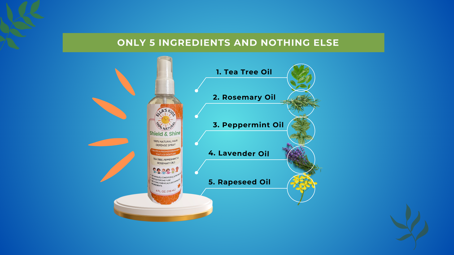 Made with only five pure oils (tea tree, lavender, rosemary, peppermint, and rapeseed), your lice spray is free from harsh chemicals, ensuring safe daily use for kids.